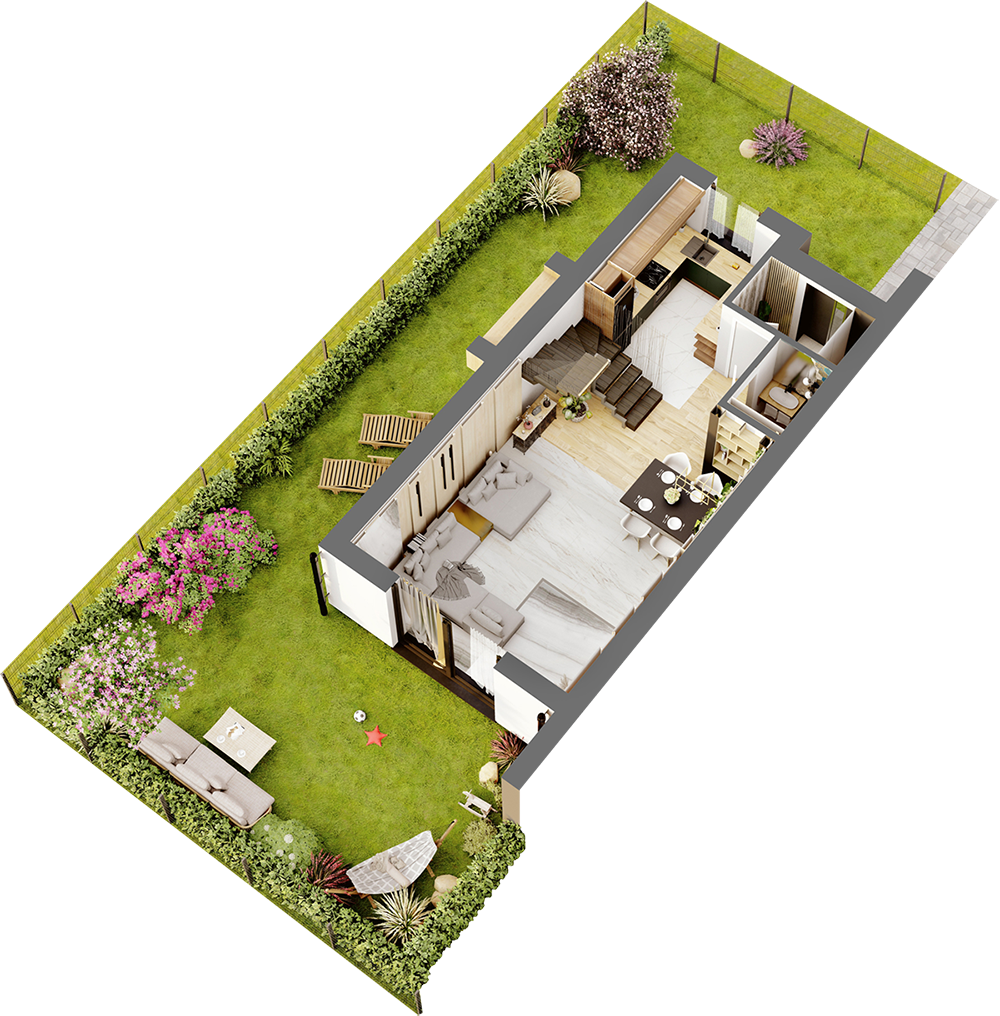 Projektując osiedle NOWA ZĄBKOWSKA zadbaliśmy o to, aby każdy nabywca mógł cieszyć się własnym ogródkiem. Spójna aranżacja przestrzeni osiedla zadba o dogodny sposób użytkowania wspólnego terenu i zagwarantuje Państwu bezpieczeństwo.